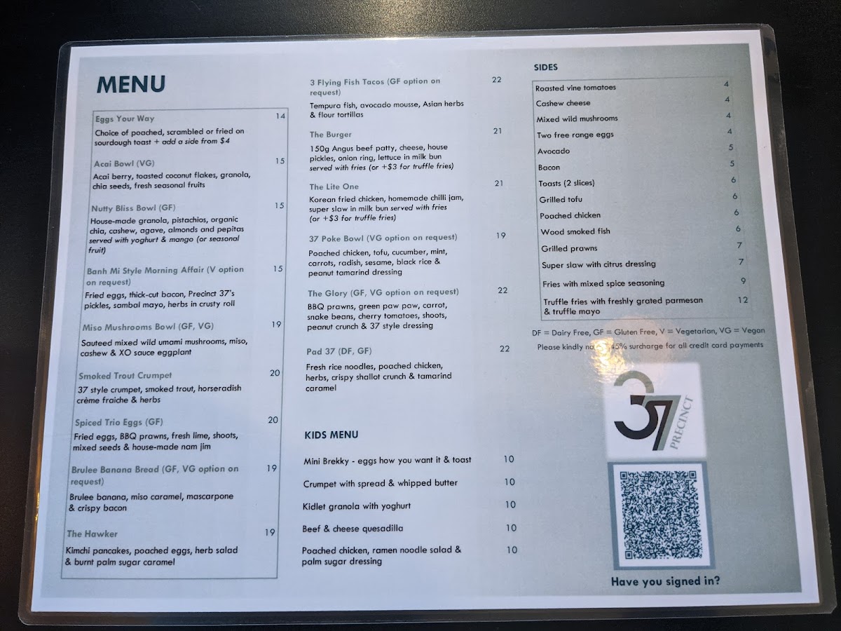 Welcome to Precinct37, a charming café located at 37 Booth St, Annandale, NSW. This local gem offers a delightful menu that caters to diverse tastes. Start your culinary journey with their sides like the Cashew Cheese Creamy, a deliciously rich dairy-free spread, or indulge in the succulent Grilled Chicken, marinated to perfection.